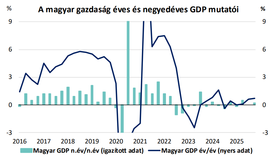 Miközben a bérdinamika valamelyest lassulhat 2026-ban, várhatóan a fogyasztás lesz továbbra is a legfontosabb motorja a gazdasági növekedésnek, amit a fogyasztási hitelek dinamikus bővülése is támogat. A beruházásoknál továbbra is lassú stabilizálódásra számítunk 2026-ban. A jelen GDP adatok fényében 2026-ban 2,5%-ot meghaladó GDP éves növekedési ütem eléréséhez erős első negyedéves növekedési adatokat kellene látnunk.