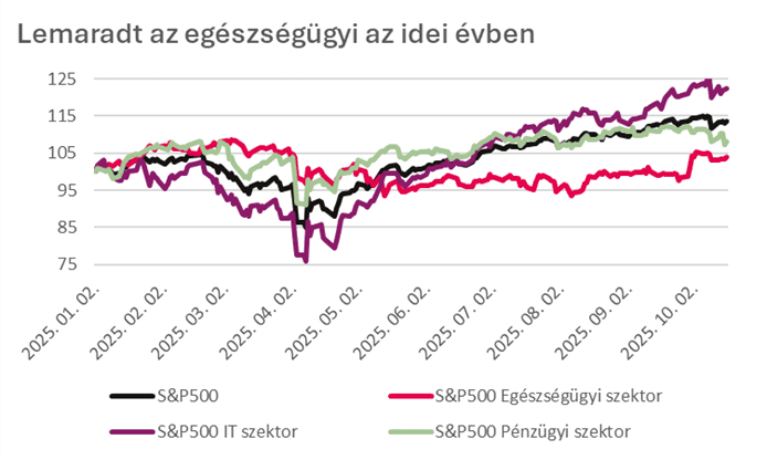 2024/2025-re a piaci narratíva végleg eltolódott. A növekedési sztorit már nem az egészségügy, hanem az AI/tech vezeti: a generatív mesterséges intelligencia, a félvezetők és a felhőalapú szolgáltatások dominálják a befektetői figyelmet. Ezzel párhuzamosan az egészségügyi szektor kettős nyomás alá került: egyrészt a Covid utáni keresletkorrekció, másrészt a politikai árnyomás és szabályozási bizonytalanság miatt. A szektor így nem tudta visszanyerni korábbi defenzív státuszát, hanem egyre inkább headline-vezérelt, eseménykockázatokkal terhelt tér lett.
