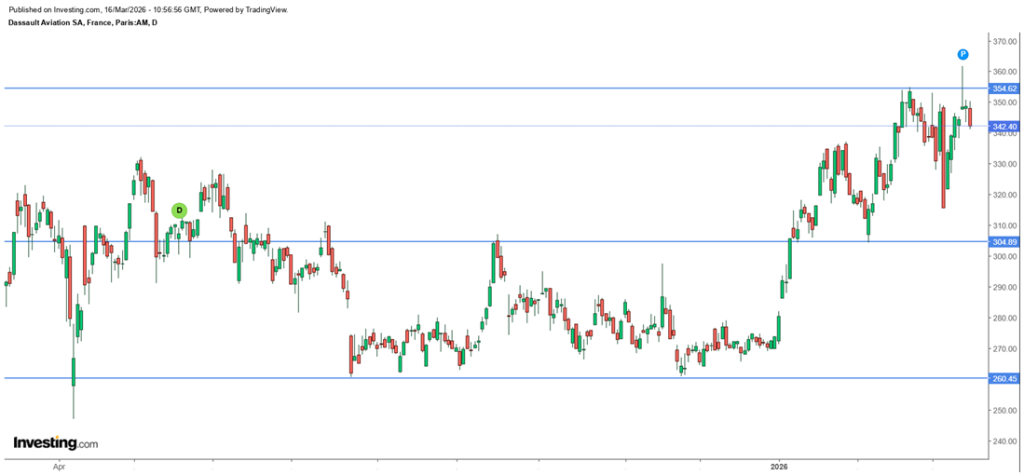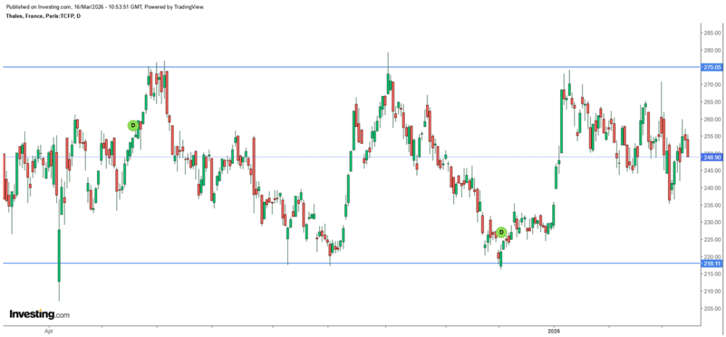 A Dassault Aviation és a SAAB mellett a Thales tűnik még bíztatónak, hiszen a jelenlegi részvényárral és a múltbeli hadiipari megrendelésekkel számolva öt éves időtávon nem tűnik drágának a papír.